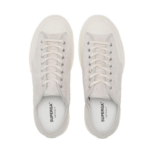 Works is the Superga Artifact sneaker crafted from genuine rich-textured suede leather: the workwear-inspired ‘70s style, taken from the brand’s historical archives, adds personality to a clean and minimalist lace-up silhouette with a cup sole, a slightly squared toe and reinforced lateral rubber panels.