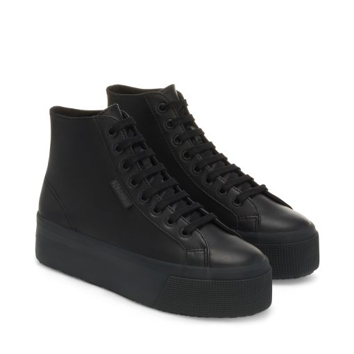 SUPERGA 2708 HI TOP NAPPA TOTAL BLACK | Womens Platform