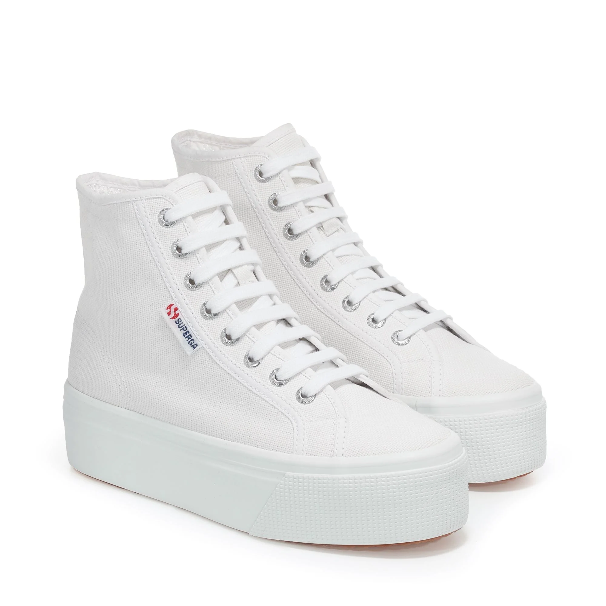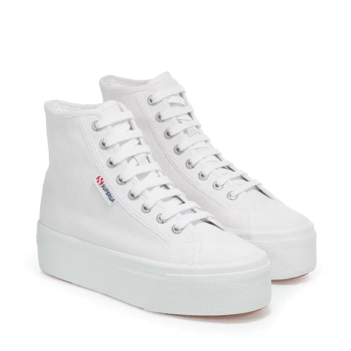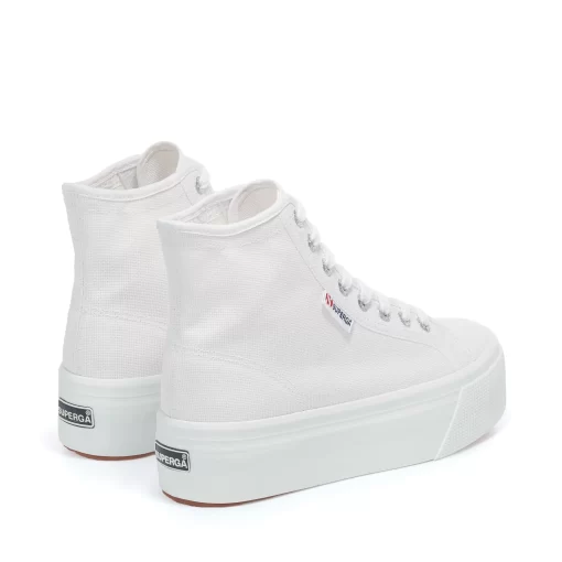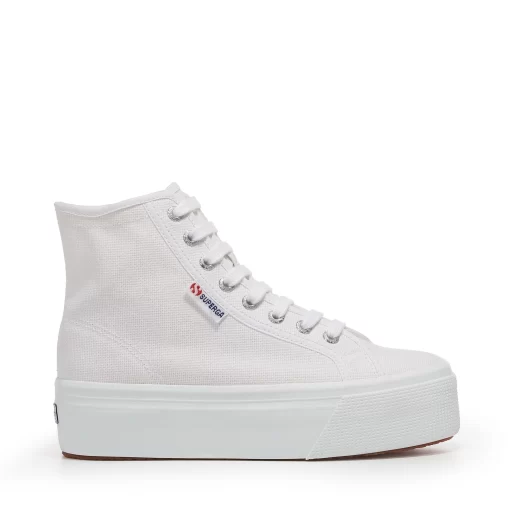 Superga style reaches new lifestyle heights with this 4 cm flatform sneaker. Its irresistible high-top silhouette pairs effortlessly with endless looks, adding a modern street touch to your everyday edit. The cotton upper ensures maximum breathability, whilst the vulcanised natural rubber sole and jacquard logo tag confirm the style’s deeply rooted DNA.