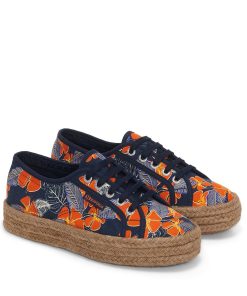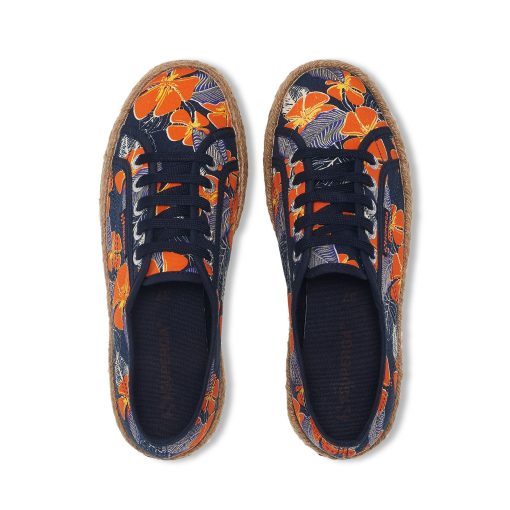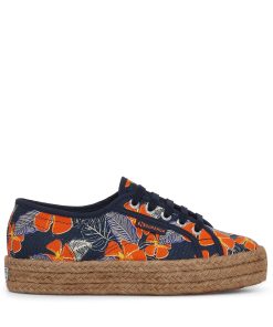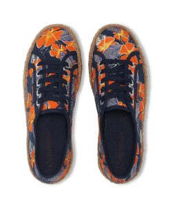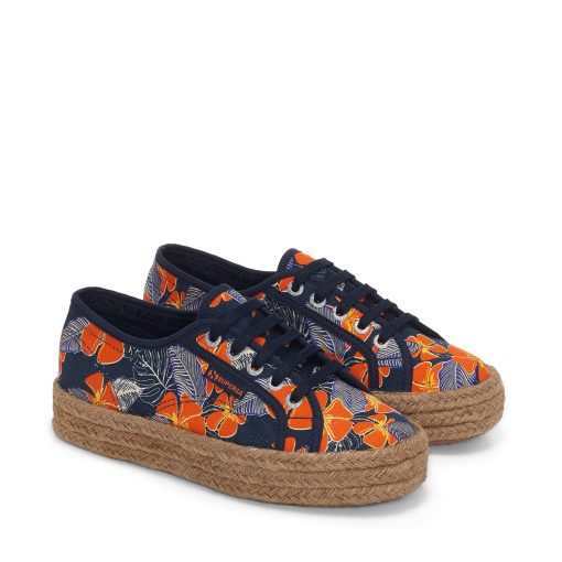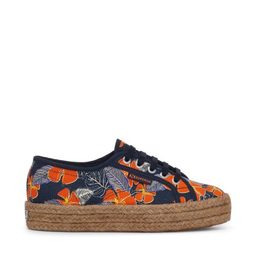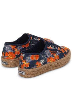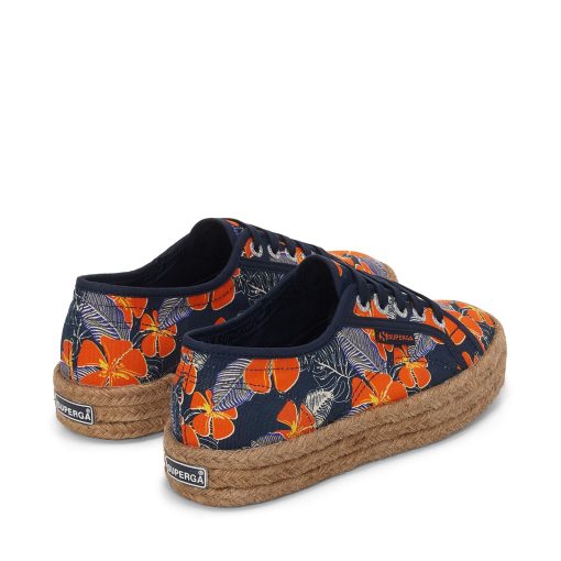 SUPERGA 2730 ROPE HIBISCUS FLOWER PRINT BLUE NAVY-ORANGE HIBISCUS | Womens Platform
