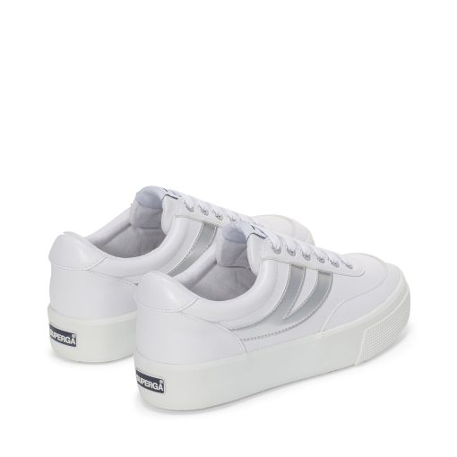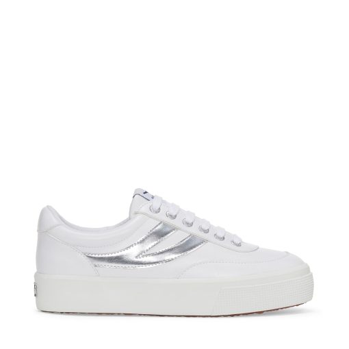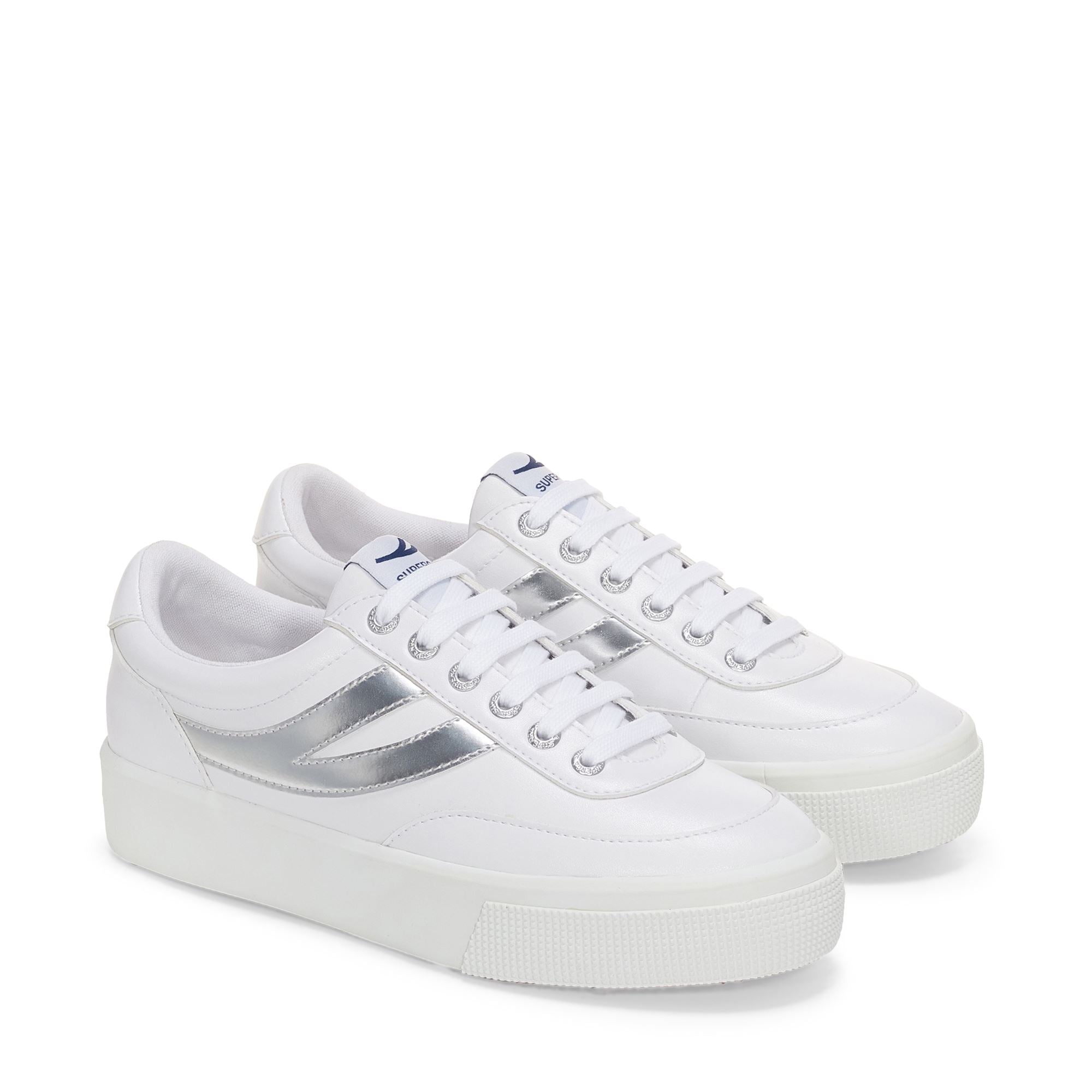 This Superga 2740 is a contemporary platform-sole sneaker distinguished by its synthetic upper with a leather-effect texture and featuring the iconic sports swallowtail logo on the side. With its 3,5 centimeters height and clean silhouette, it is the perfect complement to enhance everyday casual and formal looks with a touch of fun.