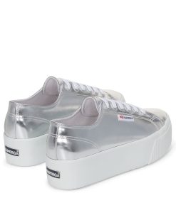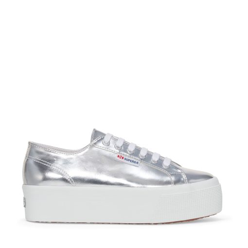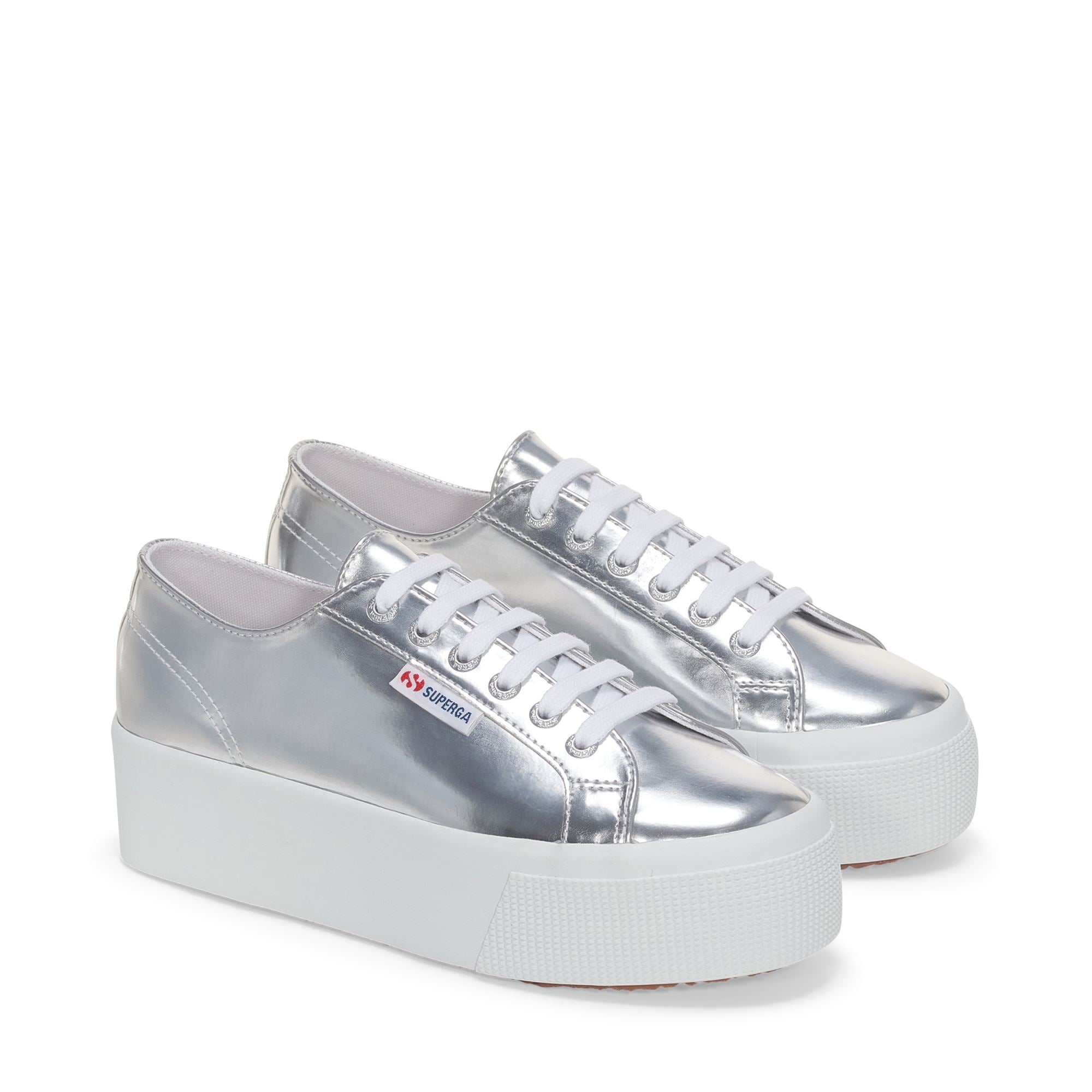 Timeless style reaches new heights. This Superga 2790 platform sneaker revisits the iconic Superga design with a 4-cm flatform wedge that flatters the silhouette and pairs casually with both denim and more girly looks. The shiny synthetic upper with a metallic mirror effect adds a glam, shiny, and distinctive note.