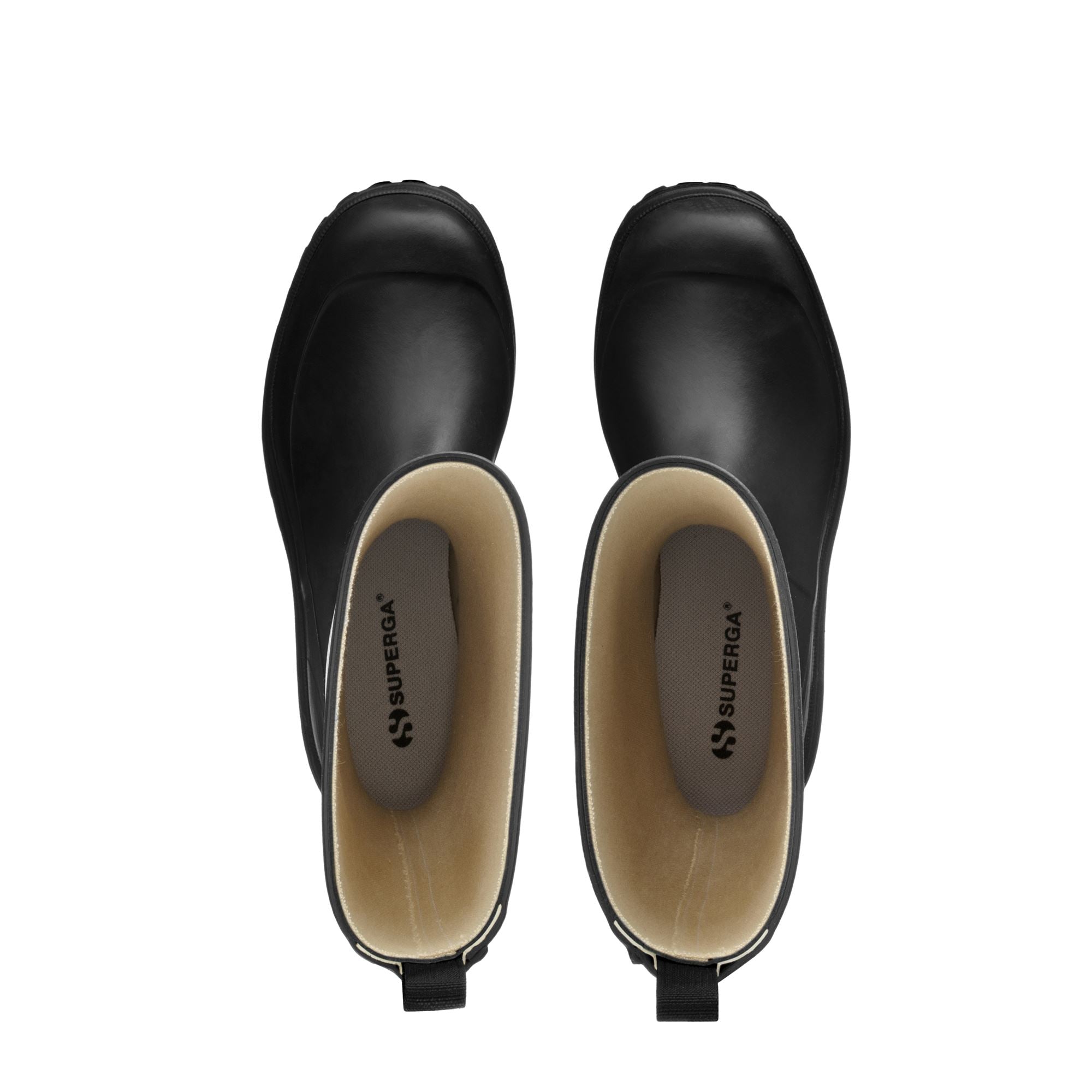 Superga evolution continues, driven by a desire to achieve ultimate functionality and protection from the elements. These modern rain boots are perfect for adventures in the great outdoors or rainy days in the city. Their robust rubber upper is set on an Alpina lug sole as a nod to the brand’s mountain roots. Finished with a sophisticated contrast detail with Superga lettering on the back.
